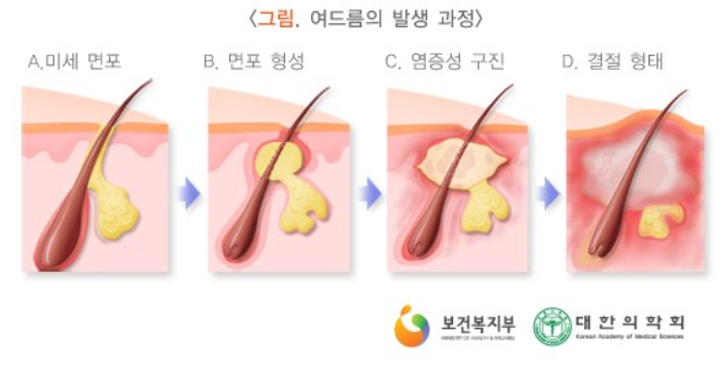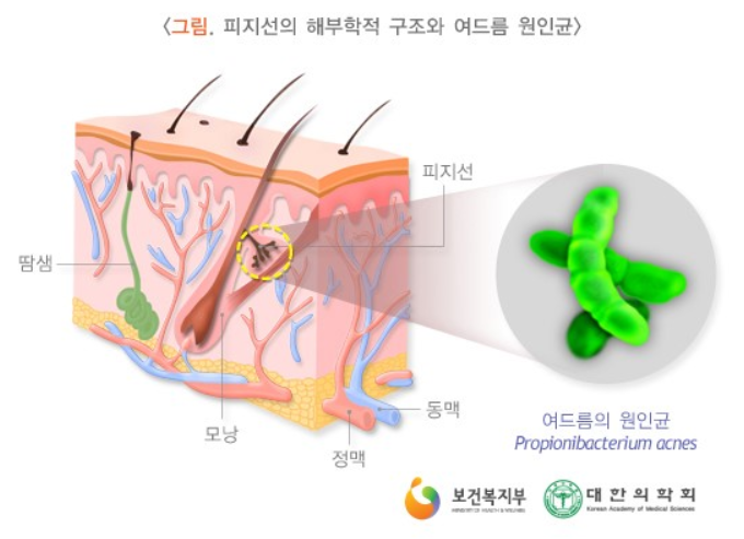 앞의 1번 설명인 '여드름이란?'을 잘 이해하셨다면