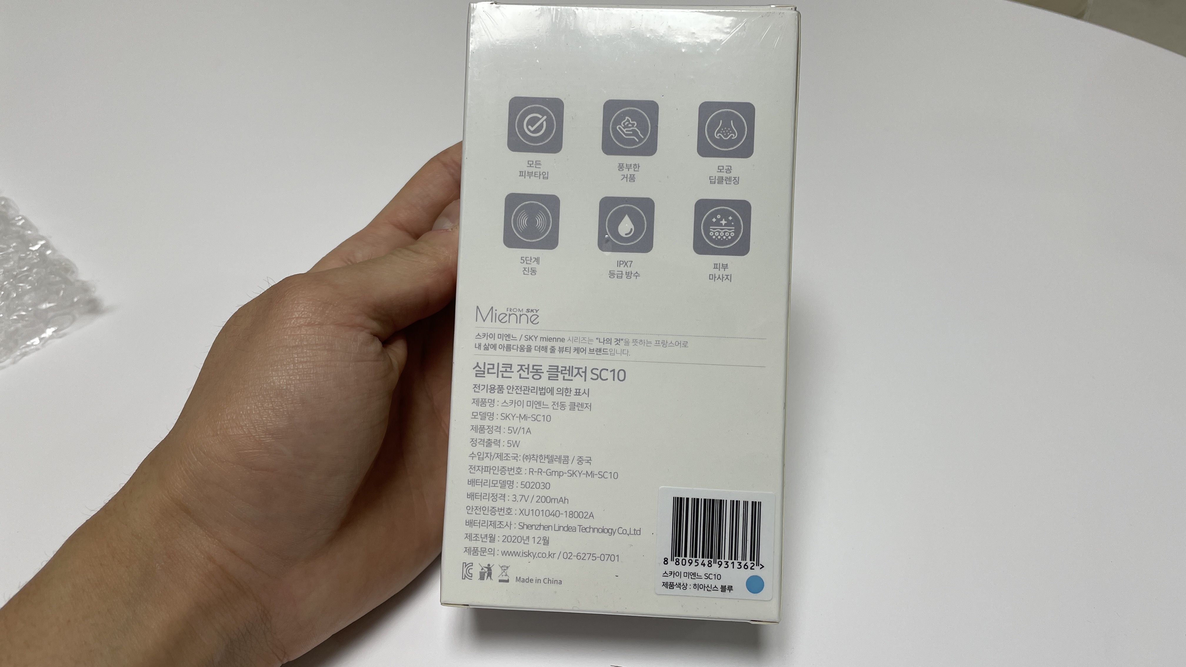 스카이 미엔느 진동클렌저는 위와 같이 스카이 전용 박스로 옵니다.