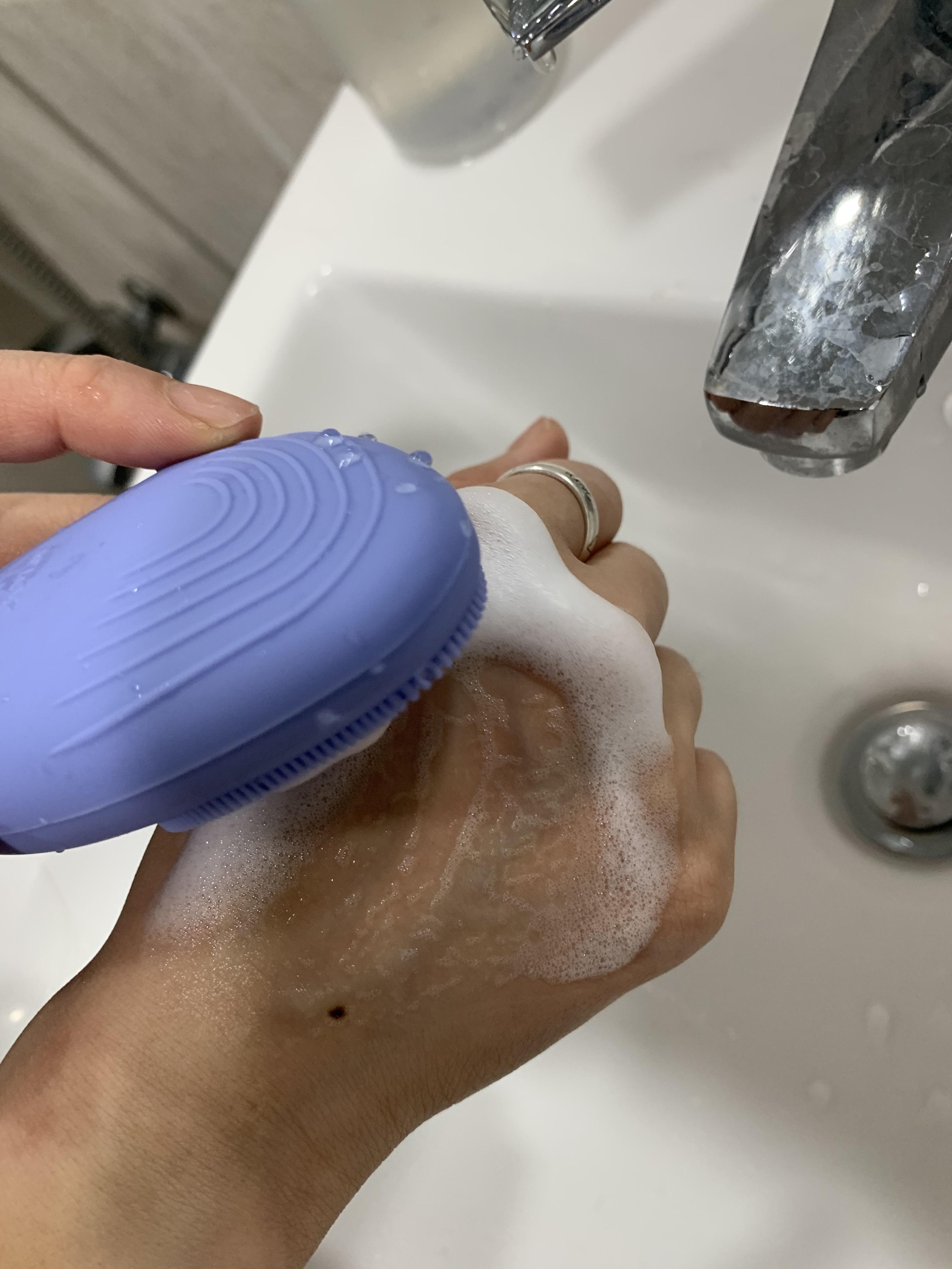 육안으로 볼 때는 손으로 씻을 때나 클렌저로 씻을 때나 큰 차이가 없어보이지만
