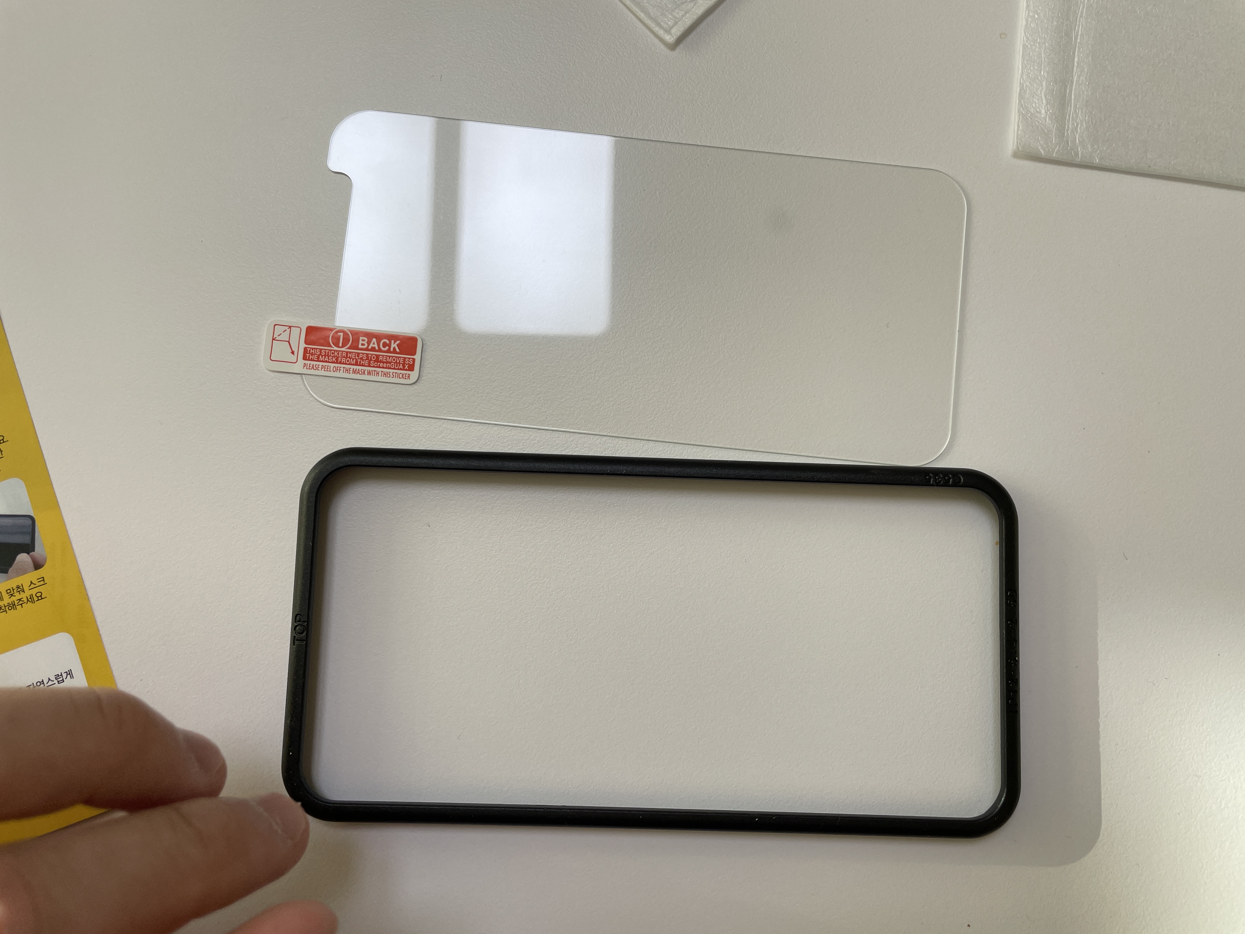 저 툴을 핸드폰에 붙이고 강화유리를 가운데에 넣기만 하면 게임이 끝나죠.