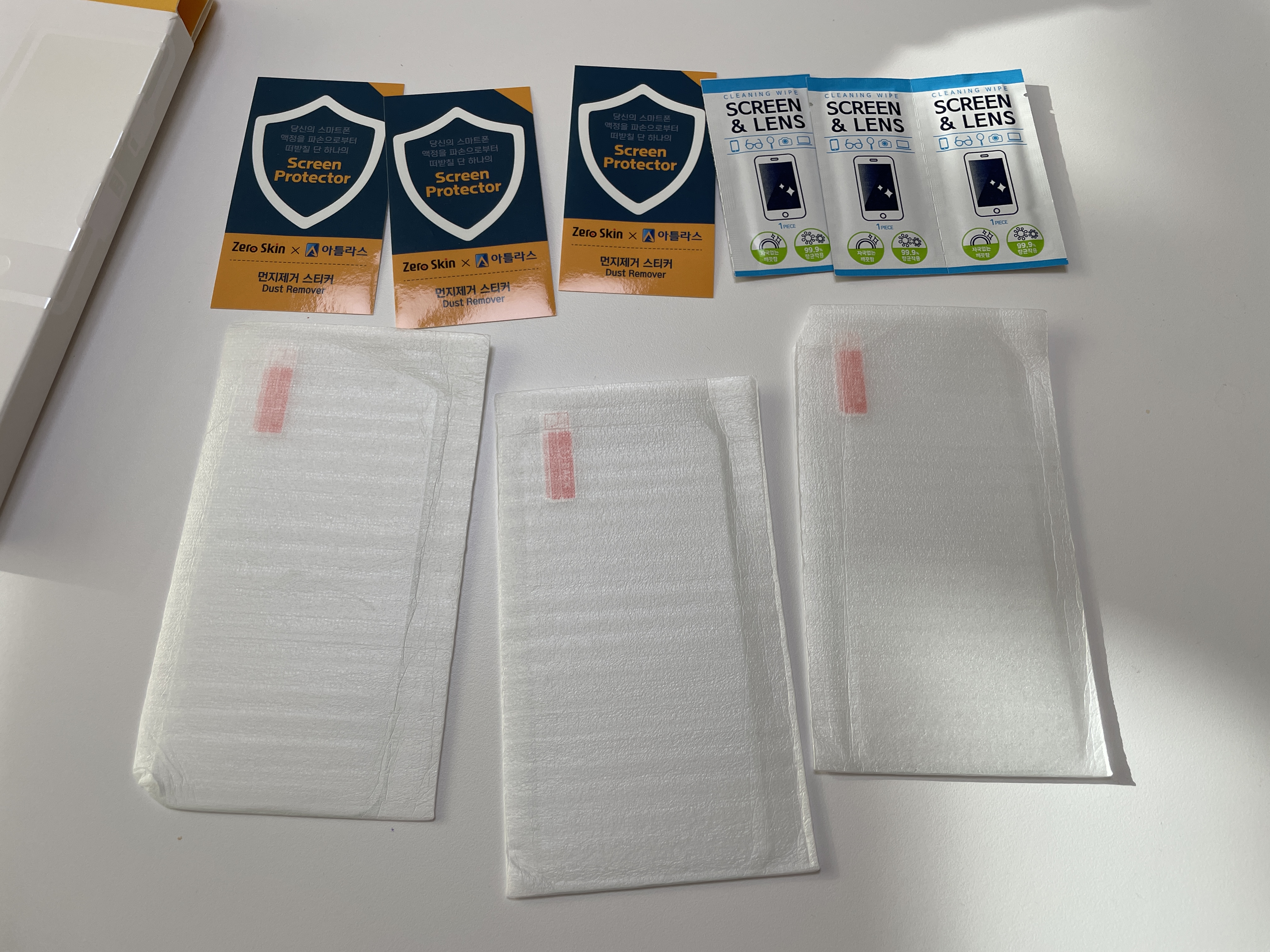 부착툴, 설명서, 필름3개가 오네요.