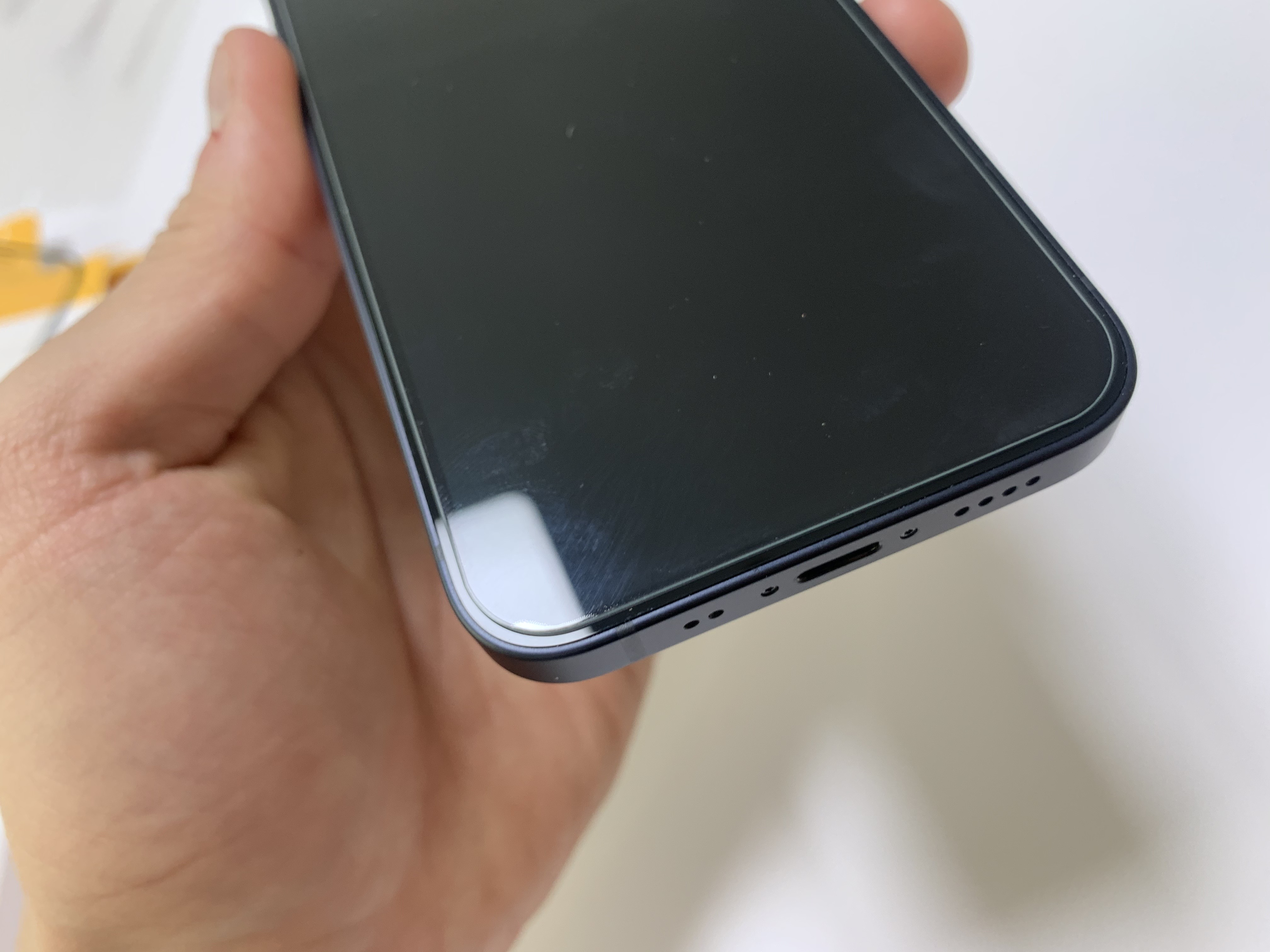 아이폰12 강화유리 윗부분입니다. 노치 부분이 제외된 제품입니다.