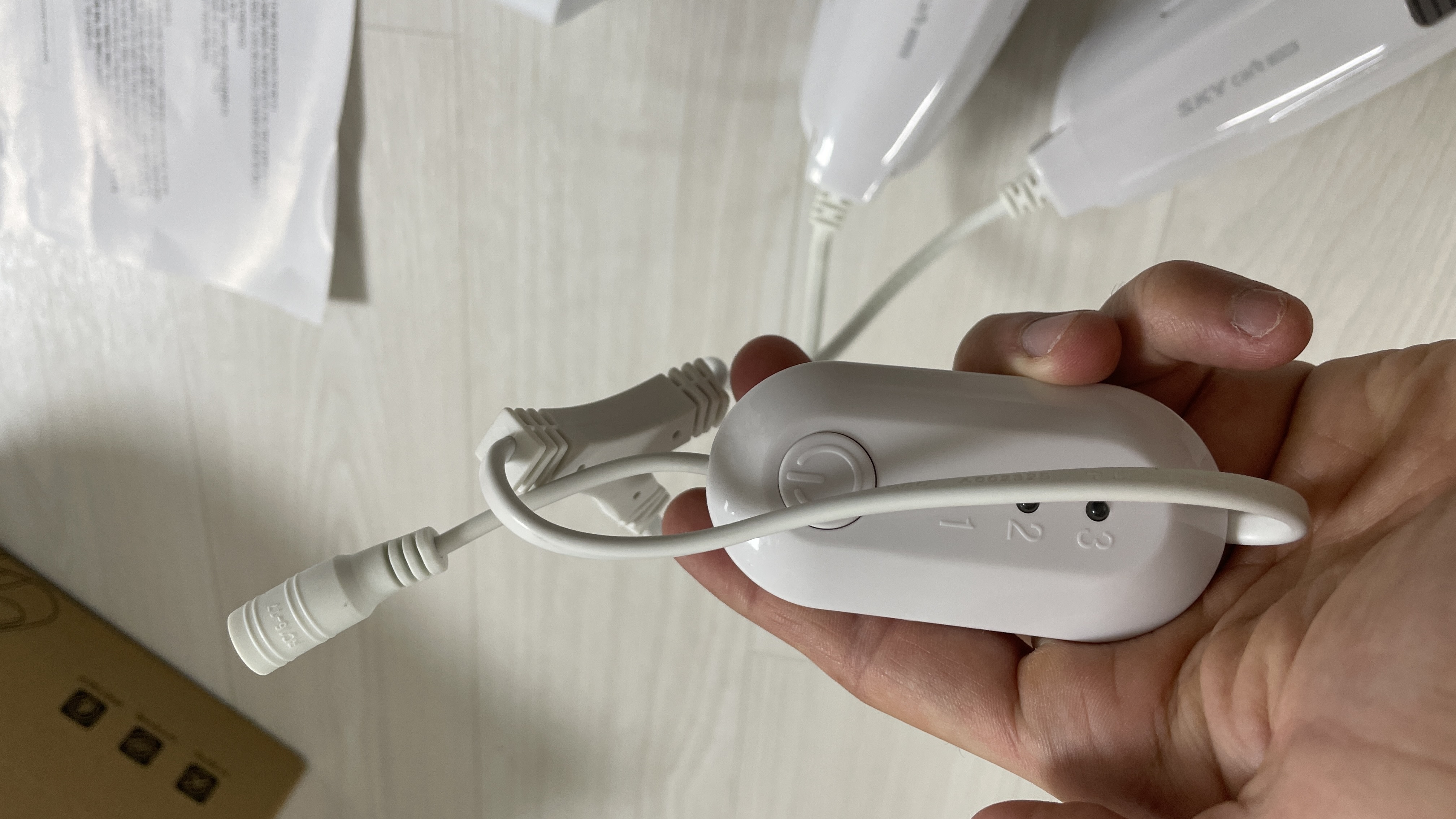 스카이 신발살균기를 작동 시켰을 때 모습입니다. 버튼을 누르면 총 세개의 세기로 조절할 수 있습니다.