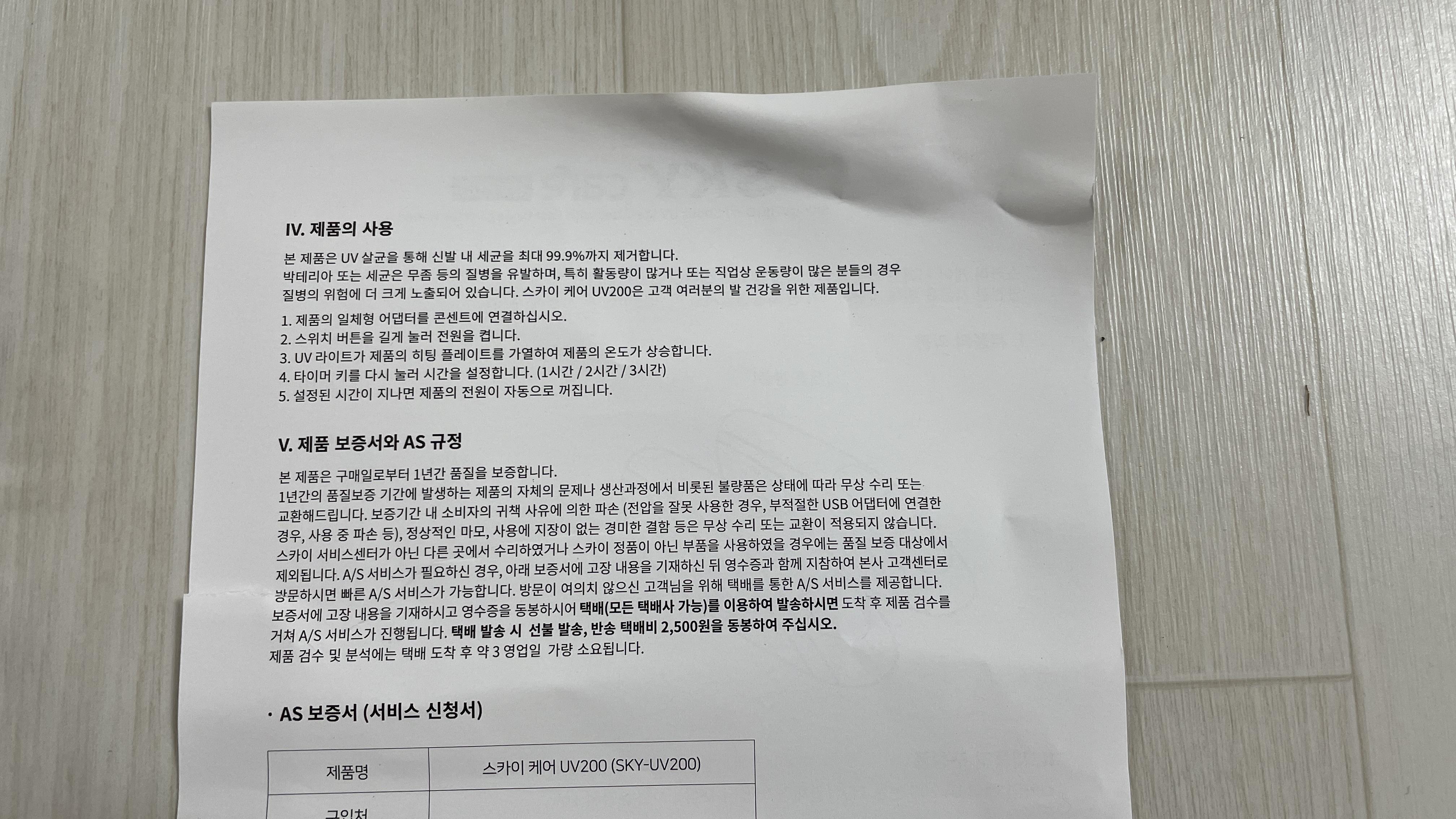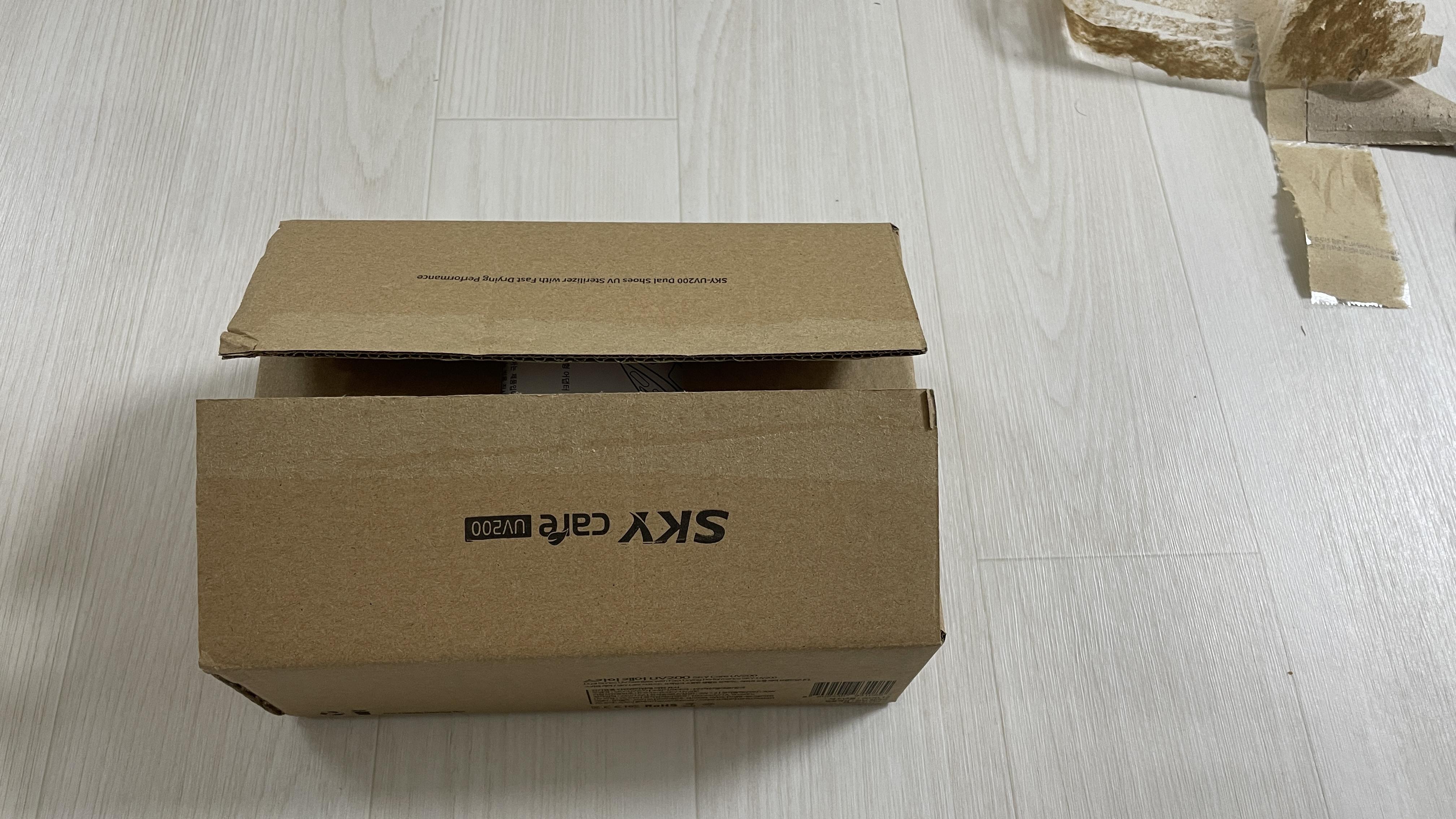 신발살균기 스카이 uv200 제품은 위와 같이 자체제작 박스로 옵니다.