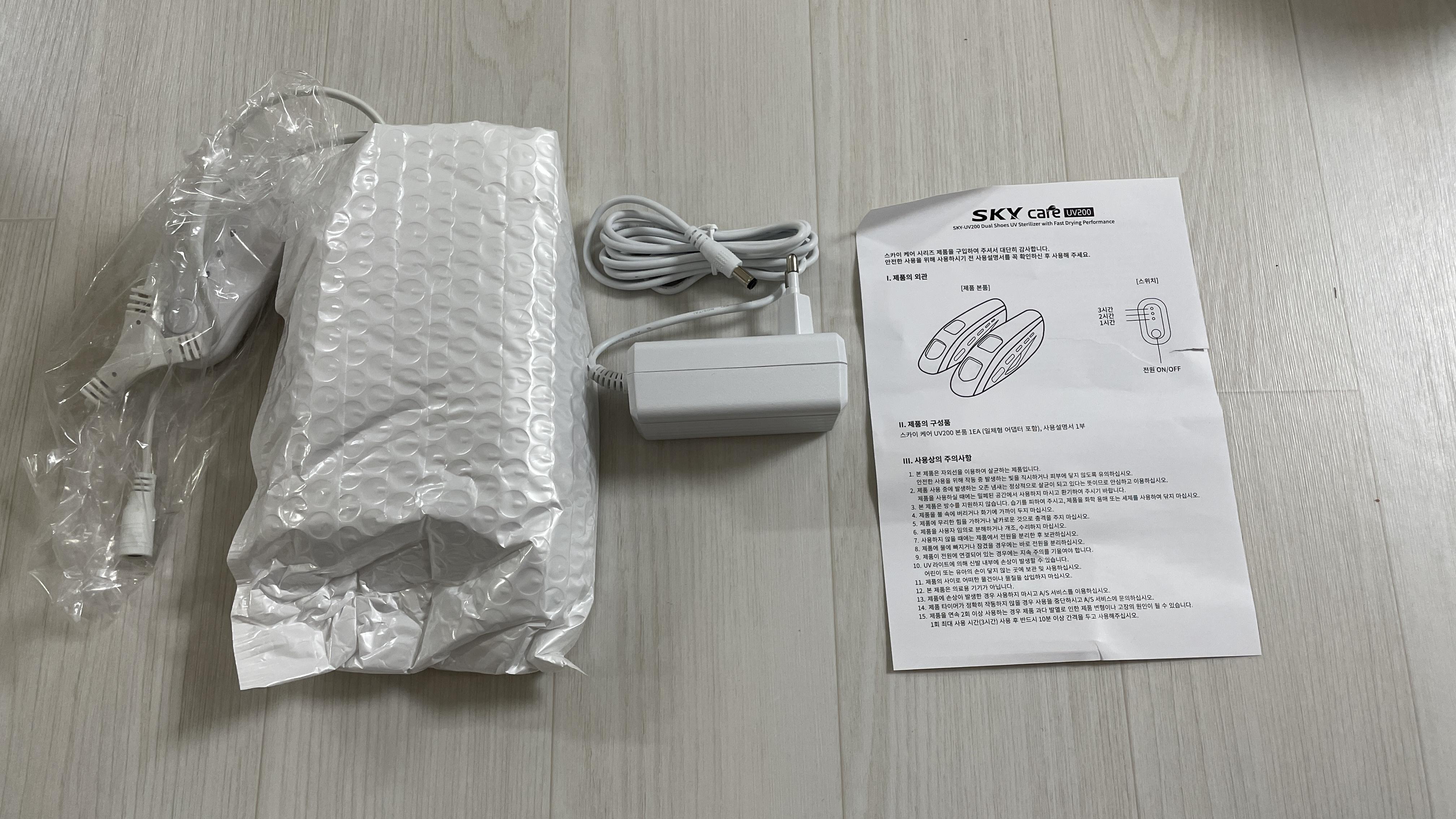 구성품은 신발살균기 본체와 충전기 그리고 설명서로 되어있습니다.