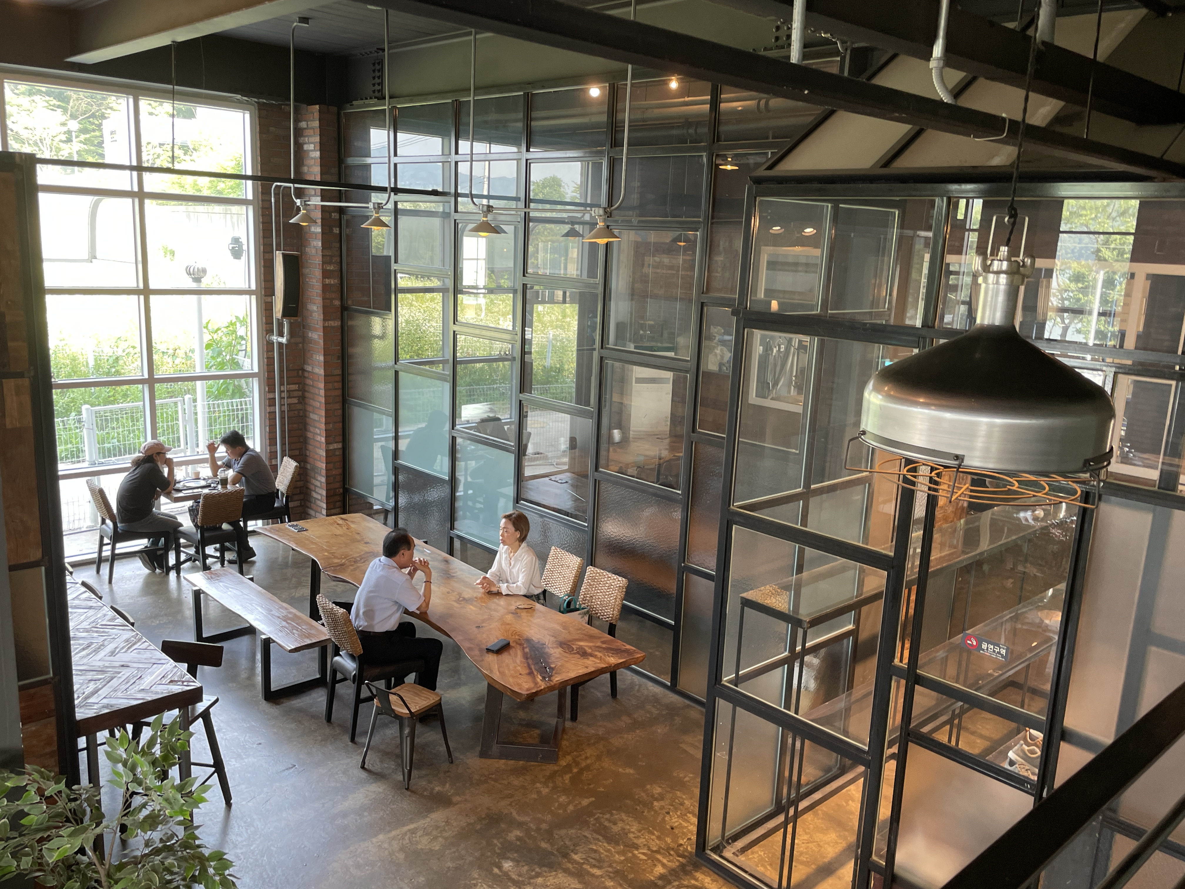 큰 테이블로 이루어져 있고 1층의 특성상 전고가 높아 개방감이 좋습니다.