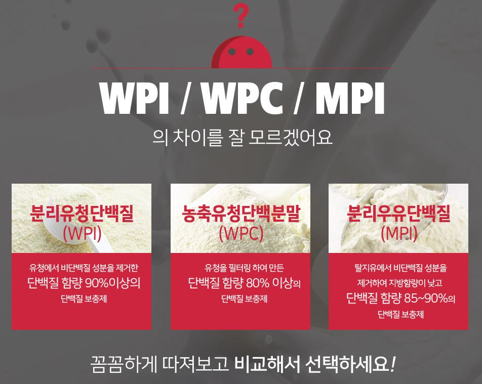 유청 단백질의 종류는 WPC, WPI, WPH가 있습니다. 아마 운동을 시작하고 프로틴을 먹기 시작할 단계면 많이 들어보셨을 겁니다. 오늘 소개해드릴 성풍 WPI의 WPI가 바로 유청 단백질의 종류인 것이죠.